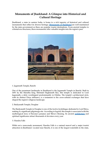 Jharkhand, a state in eastern India, is home to a rich tapestry of historical and cultural monuments that reflect its diverse heritage.
