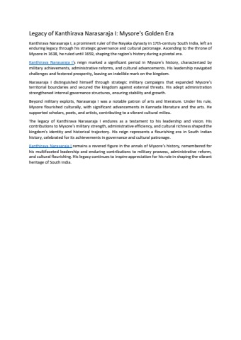 Legacy of Kanthirava Narasaraja I: Mysore's Golden Era