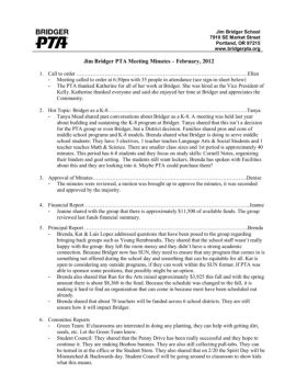 Jim Bridger PTA Meeting Minutes – February, 2012 . 1. Call to order ...