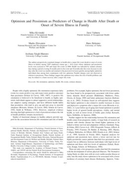 Optimism and Pessimism as Predictors of Change in Health After Death or Onset of Severe Illness in Family Mika Kivima¨ki Finnish Institute of Occupational Health