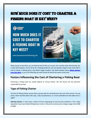 When you go to Key West, you can feel the heat of the sun on your skin, and the water that touches you is clear like turquoise. You're all set for a fishing adventure, but one question lingers: how much does it cost to charter a fishing boat in Key West? Single travelers, Key West bachelor party, fishing charters tours Key West, or just a fun-filled day out with friends all need to be aware of the costs.