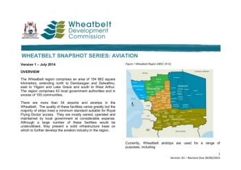 1 Version: 01 – Revision Due 30/06/2015 WHEATBELT SNAPSHOT SERIES: AVIATION. Version 1 – July 2014 . OVERVIEW . The Wheatbelt region comprises an area of 154 862 ...