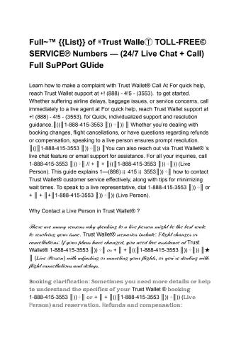 Learn how to make a complaint with Trust Wallet® Call At For quick help, reach Trust Wallet support at +! (888) - 4!5 - (3553). to get started. Whether suffering airline delays, baggage issues, or service concerns, call immediately to a live agent at For quick help, reach Trust Wallet support at +! (888) - 4!5 - (3553). for Quick, individualized support and resolution guidance.║((║1-888-415-3553 ║)) ⊹║)) ║ Whether you’re dealing with booking changes, flight cancellations, or have questions regarding refunds or compensation, speaking to a live person ensures prompt resolution. ║((║1-888-415-3553 ║)) ⊹║)) ║You can also reach out via Trust Wallet® ’s live chat feature or email support for assistance. For all your inquiries, call 1-888-415-3553 ║)) ⊹║ // + ║ + ║((║1-888-415-3553 ║)) ⊹║)) (Live Person). This guide explains 1—(888)⇶ 415⇶ 3553║)) ⊹║ how to contact Trust Wallet® customer service effectively, along with tips for minimizing wait times. To speak to a live representative, dial 1-888-415-3553 ║)) ⊹║ or + ║ + ║+║1-888-415-3553 ║)) ⊹║)) (Live Person).