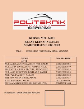 KERTAS KERJA FESTIVAL JOM KENALI MALAYSIA KOKO