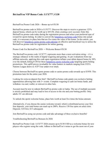 The BetAndYou promo code: LUX777, represents more than a mere activation string—it's a strategic enhancer in the realm of digital wagering and gaming. As per evaluations from top affiliate networks, applying this code upon registration inflates your debut deposit bonus by 30% over the default, hitting €130 for those targeting sports betting promotions. This uplift proves invaluable for value hunters in markets ranging from UEFA Nations League draws to ATP Tour under-over totals.https://shareyourwallpapers.com/status/incs/betandyou-promo-code.html