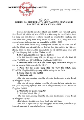 Nội quy, quy chế Đại hội Hội Liên hiệp thanh niên Việt Nam tỉnh Quảng Ninh lần thứ VII, nhiệm kỳ 2024-2029