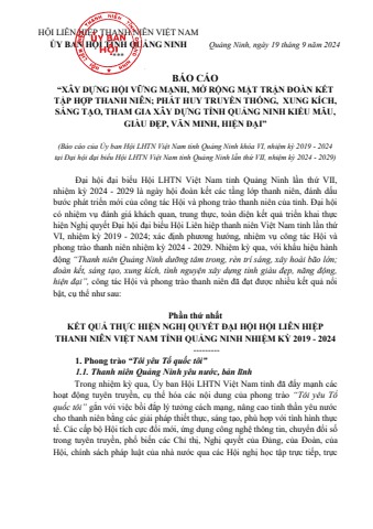 Văn kiện Đại hội Hội Liên hiệp thanh niên Việt Nam tỉnh Quảng Ninh lần thứ VII, nhiệm kỳ 2024-2029