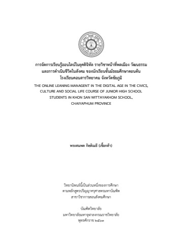การจัดการเรียนรู้ออนไลน์ในยุคดิจิทัล รายวิชาหน้าที่พลเมือง วัฒนธรรมและการดำเนินชีวิตในสังคม ของนักเรียนชั้นมัธยมศึกษาตอนต้น โรงเรียนคอนสารวิทยาคม จังหวัดชัยภูมิ