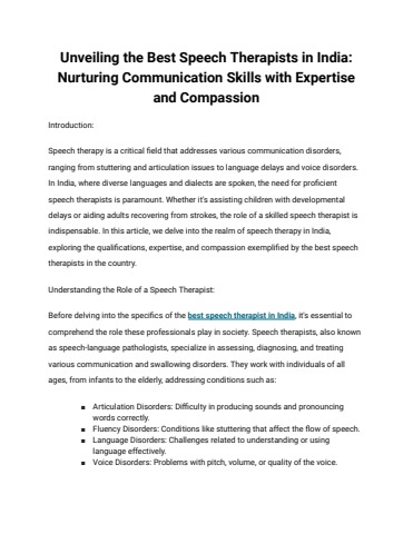 Unlocking Communication: Discovering the Best Speech Therapist in India