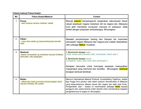 Fahami Maksud Fokus Soalan
