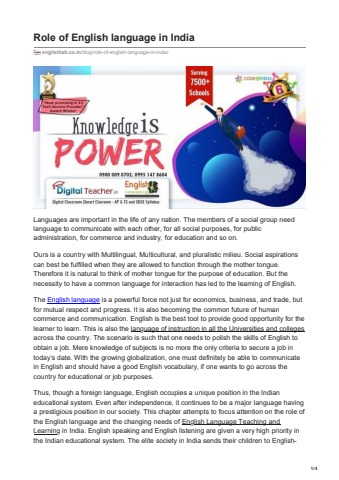 Role of English language in India