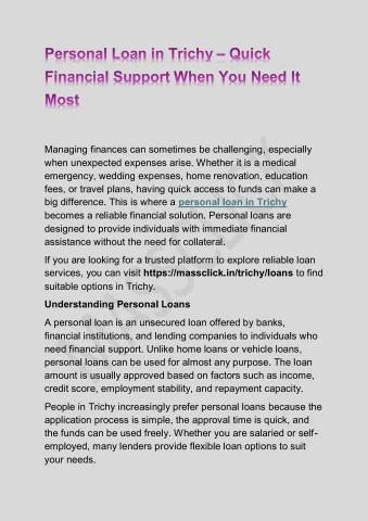 If you are looking for a trusted platform to explore reliable loan services, you can visit https://massclick.in/trichy/loans to find suitable options in Trichy.