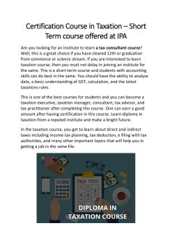 Want to become the tax consultant? Join IPA’s Tax Consultant course and learn GST, ITR, TDS return filing process. Visit the website for more information.
