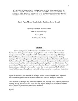 1 L. rubellus preference for Quercus spp. demonstrated by isotopic and density analysis in a northern temperate forest . Derek Ager, Megan Rourk, Catlin Rushlow ...