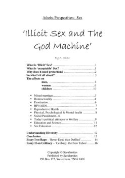 1 What is ‘illicit’ sex’? It is any sexual activity that is prohibited, forbidden or illegal. It is all forms of exploitative or forced sex – child sex abuse ...