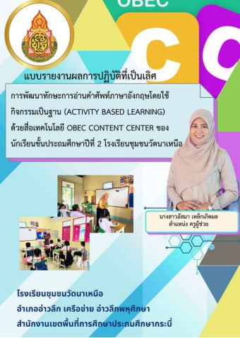การพัฒนาทักษะการอ่านคำศัพท์ภาษาอังกฤษโดยใช้กิจกรรมเป็นฐาน (Activity based learning) ด้วยสื่อเทคโนโลยี OBEC Content Center ของ นักเรียนชั้นประถมศึกษาปีที่ 2 โรงเรียนชุมชนวัดนาเหนือ