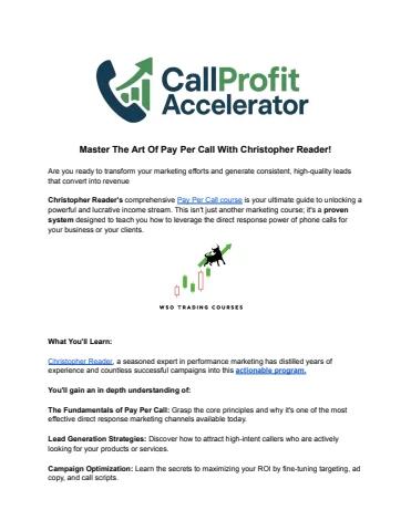 Chris Reader, alongside affiliate marketing veteran Mark Ling, has launched a brand-new affiliate course focused on the booming Pay Per Call industry. Inside, you’ll learn step-by-step how to generate high-quality inbound calls, partner with top-paying networks, and scale campaigns profitably. This course is designed for both beginners and experienced marketers looking to tap into one of the most lucrative and fast-growing areas of affiliate marketing.