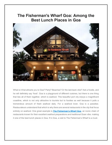 If you're in Goa and looking for a place in Goa, The Fisherman’s Wharf Goa should be at the top of your list. With its lively atmosphere, extensive seafood menu, and charming Goan ambiance, it offers an unforgettable dining experience. Whether you're a seafood lover or simply looking to savour the flavours of Goa, It will not disappoint you as it is truly one of the best lunch places in Goa.