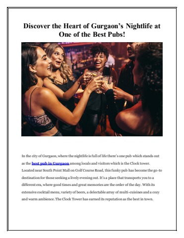 In the city of Gurgaon, where the nightlife is full of life there’s one pub which stands out as the best pub in Gurgaon among locals and visitors which is the Clock tower. So, if you’re in Gurgaon, make sure to book your table through EazyDiner for a taste of delicious food, a wide variety of drinks, and a memorable night out.
