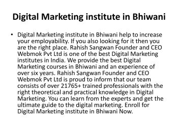 Now Bhiwani Job Seekers will also get the opportunity to grow their skills in Digital Marketing with the best Institute of Rahish Sangwan in Bhiwani