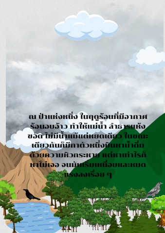ณ ป่าแห่งหนึ่ง ในฤดูร้อนที่มีอากาศร้อนอบอ้าว ทำให้แม่น้ำ ลำธารแห้งขอด ไม่มีน้ำแม้แต่หยดเดียว ในขณะเดียวกันก็มีกาตัวหนึ่งบินหาน้ำดื่มด้วยความหิวกระหาย แต่หาเท่าไรก็หาไม่เจอ จนมันเริ่มเหนื่อยและหมดแ