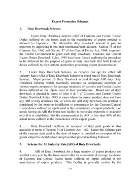 Export Promotion Schemes 1. Duty Drawback Scheme