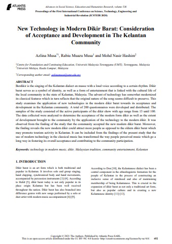 New Technology in Modern Dikir Barat: Consideration of Acceptance and Development in The Kelantan Community