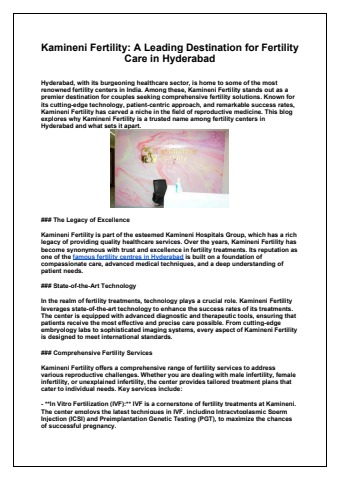 Hyderabad, with its burgeoning healthcare sector, is home to some of the most renowned fertility centers in India. Among these, Kamineni Fertility stands out as a premier destination for couples seeking comprehensive fertility solutions. Known for its cutting-edge technology, patient-centric approach, and remarkable success rates, Kamineni Fertility has carved a niche in the field of reproductive medicine. This blog explores why Kamineni Fertility is a trusted name among fertility centers in Hyderabad and what sets it apart.