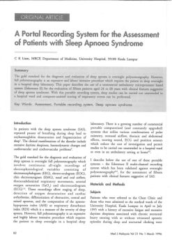 ASSESSMENT OF PATIENTS WITH SLEEP APNOEA SYNDROME assessed by the author. Each patient also underwent ai1 examination by the ear, nose and throat (ENT)