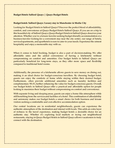 Looking for Budget Hotels in Salford Quays? Discover the perfect blend of affordability, comfort, and convenience at Quays Budget Hotels Salford Quays.