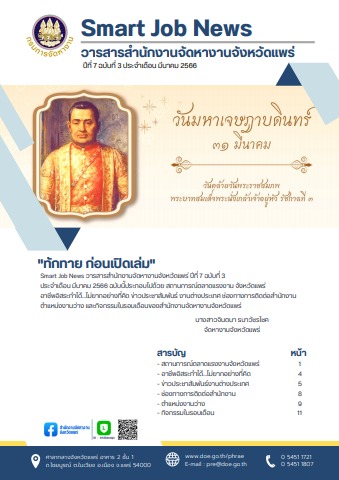 วารสารสำนักงานจัดหางานจังหวัดแพร่ Smart Job News ประจำเดือน มีนาคม 2566
