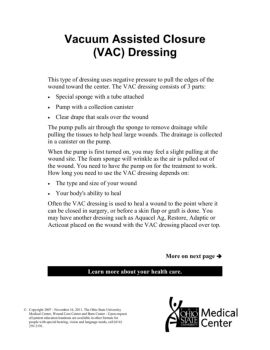 Vacuum Assisted Closure (VAC) Dressing - Patient Education