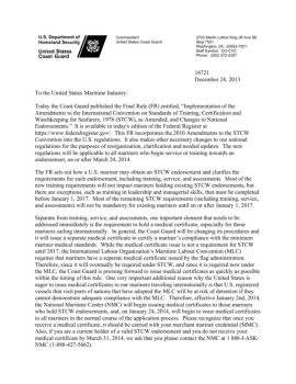 Commandant United States Coast Guard 2703 Martin Luther King JR Ave SE : Stop 7501 Washington, DC 20593-7501 Staff Symbol: CG-CVC 16721 December 24, 2013