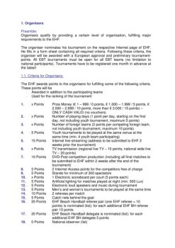 1. Organisers Preamble: Organisers qualify by providing a certain level of organisation, fulfilling major requirements to the EHF. The organiser nominates his ...