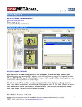 PhotoMetaData: Photo Mechanic Tutorial 2 Photometadata.org was developed by the Stock Artists Alliance in partnership with the Library of Congress