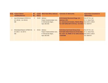 Sl.No. Project (State) [Funding Source] NH No. Length (Kms.) NHAI Field Office Address Contractor & Nationality Supervision Consultant &