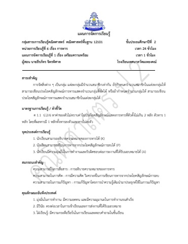 แผนการจัดการเรียนรู้หน่วยที่ 6 การหาร