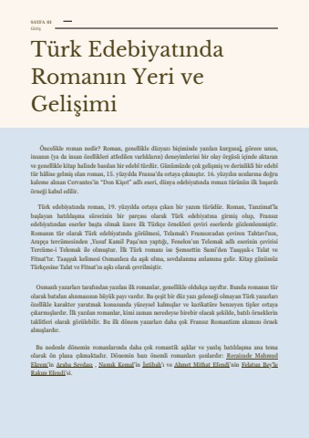 Türk Edebiyatında Romanın Yeri ve Gelişimi