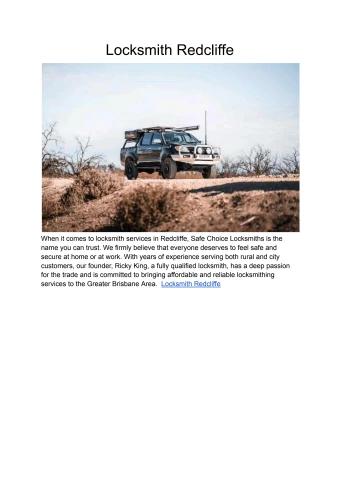 When it comes to locksmith services in Redcliffe, Safe Choice Locksmiths is the name you can trust. We firmly believe that everyone deserves to feel safe and secure at home or at work. With years of experience serving both rural and city customers, our founder, Ricky King, a fully qualified locksmith, has a deep passion for the trade and is committed to bringing affordable and reliable locksmithing services to the Greater Brisbane Area.