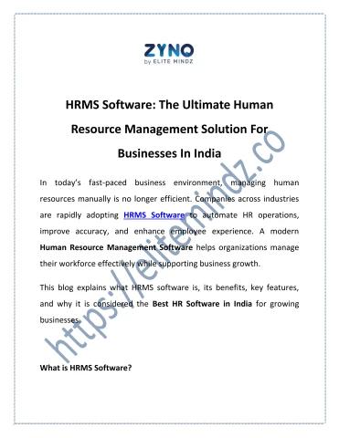 Discover ZYNO by Elitemindz, the leading Human Resource Management Software in India. Automate payroll, attendance, recruitment, and performance management with cloud-based