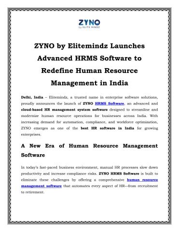 Human Resource Management Software | ZYNO by Elitemindz