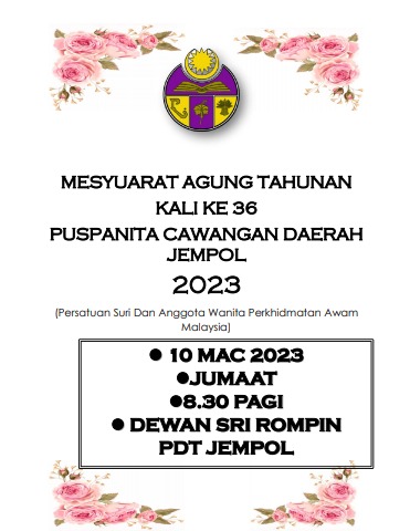 BUKU PROGRAM MESYUARAT AGUNG PUSPANITA CAWANGAN DAERAH JEMPOL KE 36 TAHUN 2023