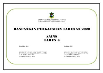 Rancangan Pengajaran Tahunan 2020 Sains Tahun 6