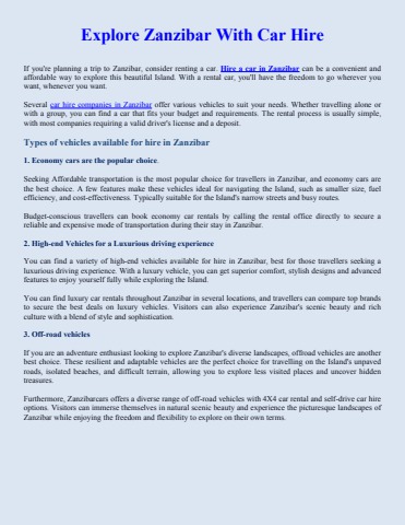 Read more: https://medium.com/@zanzibarcarsrentals/explore-zanzibar-with-car-hire-3fc4e573aa7d