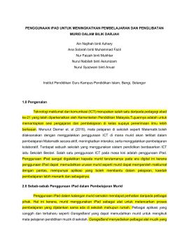 PENGGUNAAN iPAD UNTUK MENINGKATKAN PEMBELAJARAN DAN PENGLIBATAN MURID DALAM BILIK DARJAH