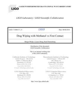 LIGO LIGO- T1000137-v3 2 1 Introduction The purpose of this document is to outline the strengths and weaknesses of using a methanol drag wipe vs first contact for ...