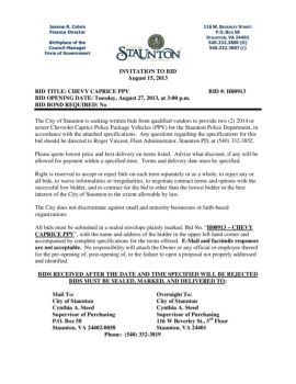 H00913 – CHEVY CAPRICE PPV DUE 3:00 PM, TUESDAY, AUGUST 27, 2013 3 CITY OF STAUNTON BID FORM DESCRIPTION TOTAL COST 2014 or newer model Chevrolet Caprice PPV, with ...