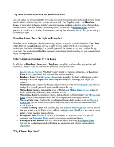 Top Limo offers Finest Hamilton limo service! Book our affordable, reliable, & punctual Hamilton airport limousine service.