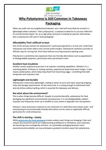 Despite mounting environmental concerns, polystyrene remains a popular choice for takeout packaging because to its low cost, insulation, and convenience.