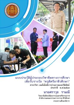 แบบประวัติผู้ประกอบวิชาชีพทางการศึกษาที่ได้รับคัดเลือก เพื่อรับรางวัล “ครูดีศรีอาชีวศึกษา” สาขาวิชา เทคโนโลยีการถ่ายภาพและวีดิทัศน์ ประจำปี พ.ศ.๒๕๖๓<br>นายศราวุธ รามณี ข้าราชการครู ตำแหน่งครูผู้ช่วย<br>วิทยาลัยศิลปหัตถกรรมนครศรีธรรมราช<br>สำนักงานคณะกรรมการการอาชีวศึกษา<br>กระทรวงศึกษาธิการ